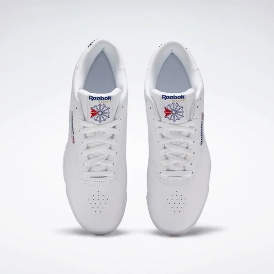 Otro detalle relevante: Lengüeta y talón con logo Reebok original, destacando su herencia deportiva.
