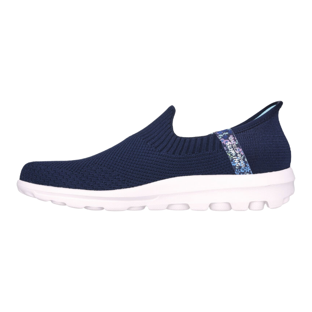 Las Zapatillas Skechers Slip-Ins: GO WALK Travel Tahiti Sunset Azul Marino (Mujer) | 124799-NVY combinan estilo moderno y funcionalidad, ofreciendo una experiencia de uso sin complicaciones y máxima comodidad para quienes buscan practicidad sin renunciar al diseño.