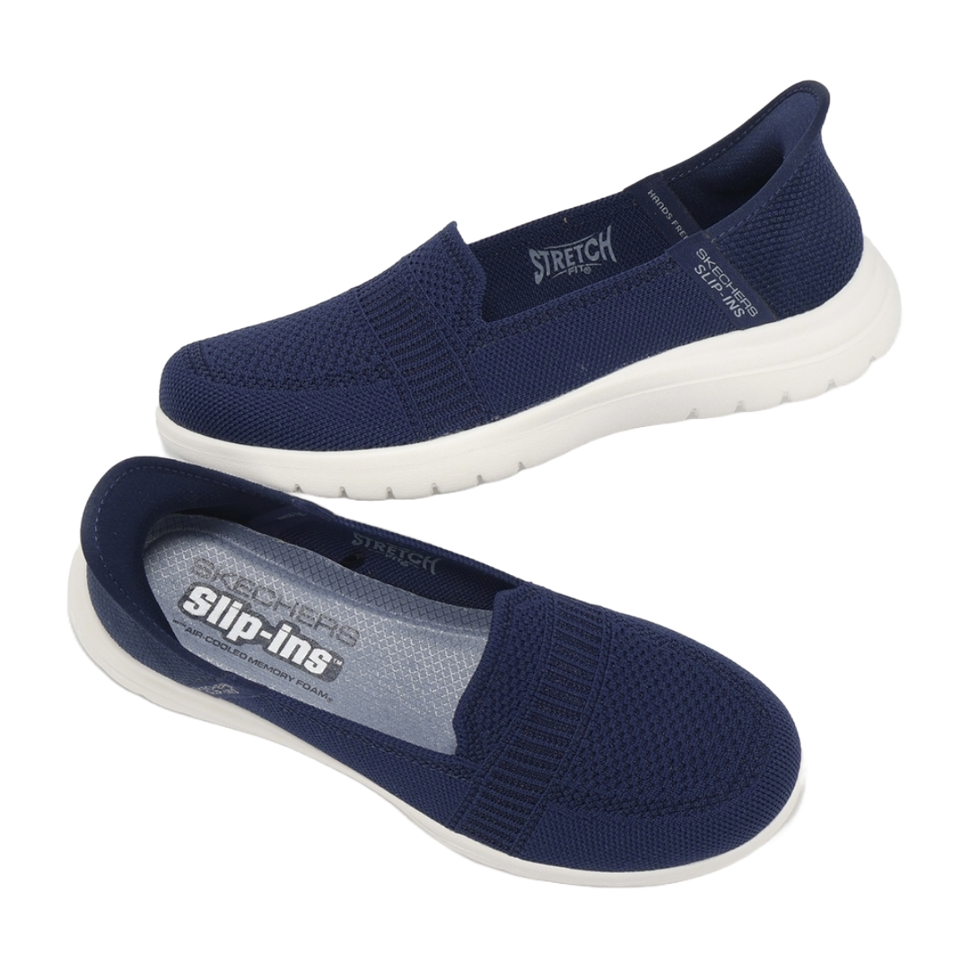 Añade las Zapatillas Skechers Slip-ins On-the-Go Flex Camellia Azul Marino (Mujer) 138181-NVY a tu colección y disfruta de un confort sin igual, ¡perfectas para cada momento del día! ¡Haz tu pedido hoy mismo!