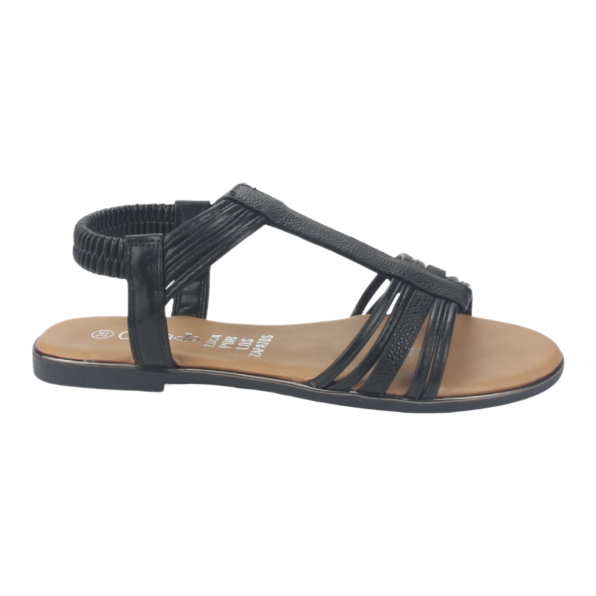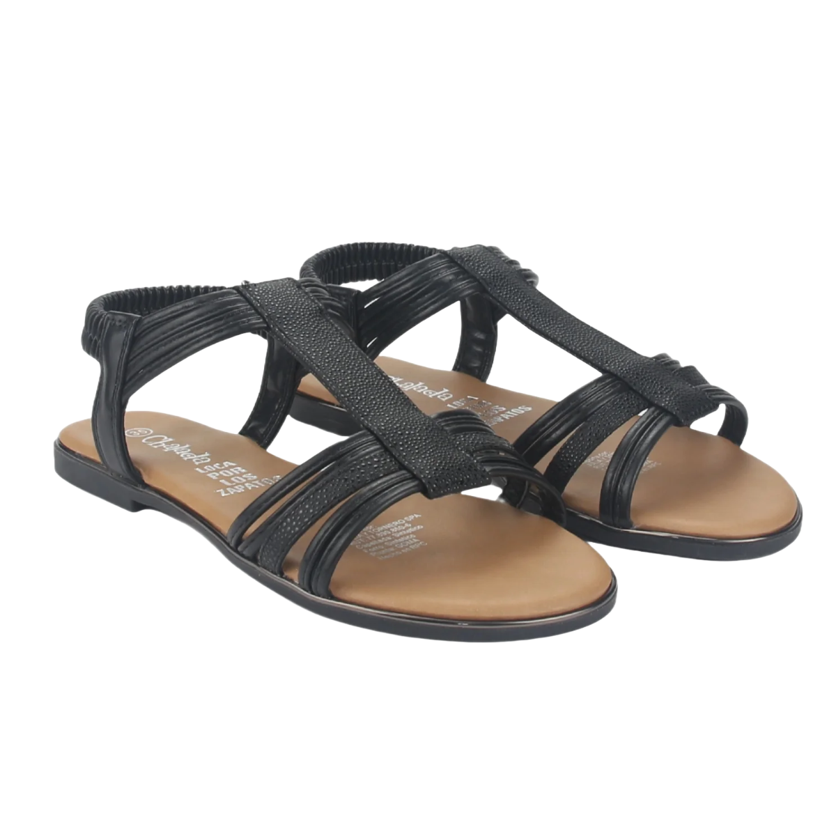 Este modelo se caracteriza por su diseño simple en color negro, lo que las convierte en una opción versátil y fácil de combinar con diferentes estilos de vestimenta, ideal para el uso diario en climas cálidos. Su diseño plano prioriza la comodidad, haciéndolas adecuadas para caminatas prolongadas o actividades casuales.