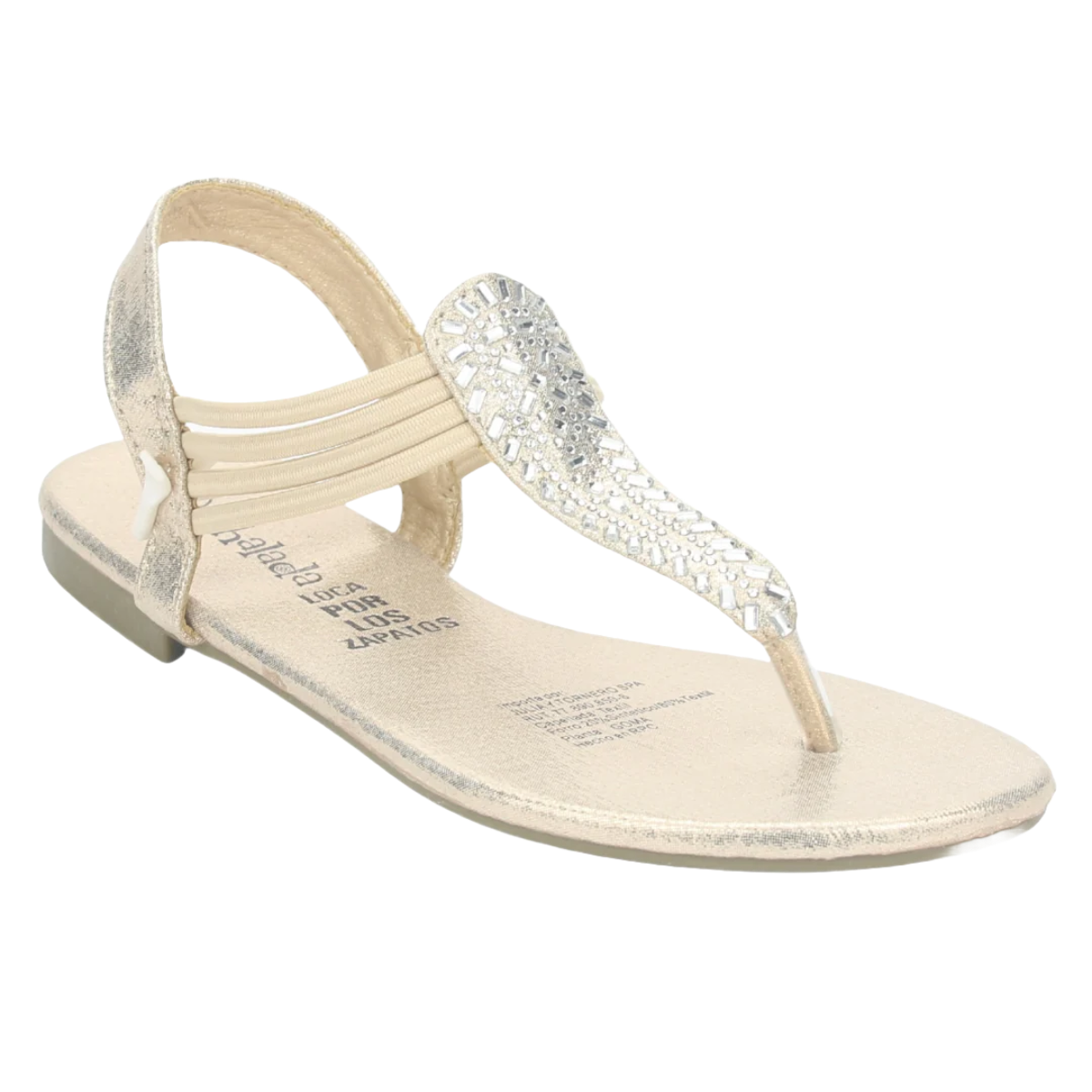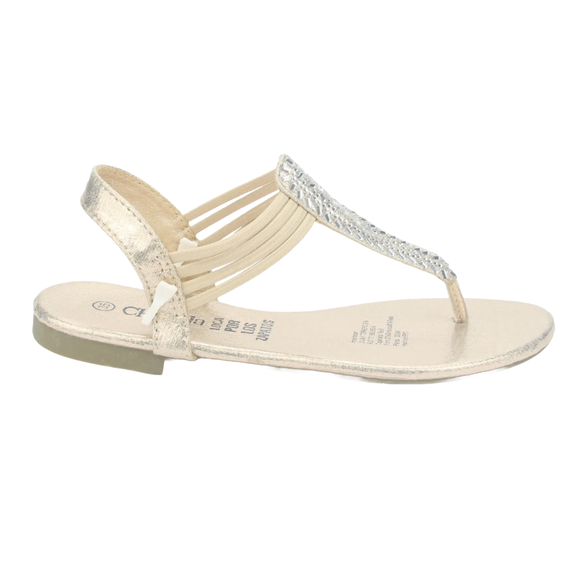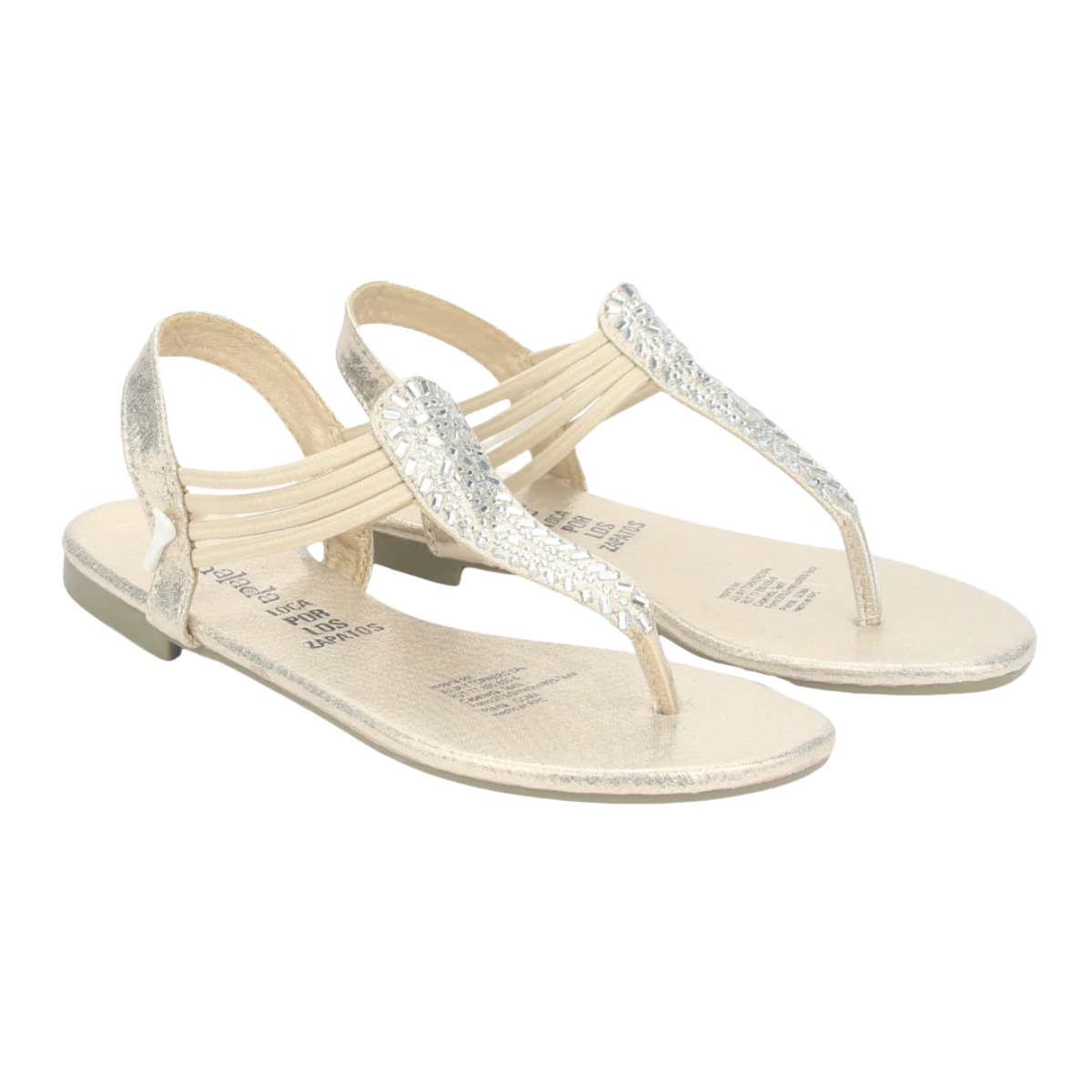 Las sandalias Chalada Gold 17-ALKI-5 son un modelo plano diseñado para mujeres, fabricado con materiales sintéticos en la capellada y el forro, complementados con una planta de goma resistente. Este diseño destaca por su acabado dorado, ideal para looks casuales o un estilo más elegante. Su estructura cómoda y ligera las convierte en una excelente elección para el uso diario o para eventos informales.