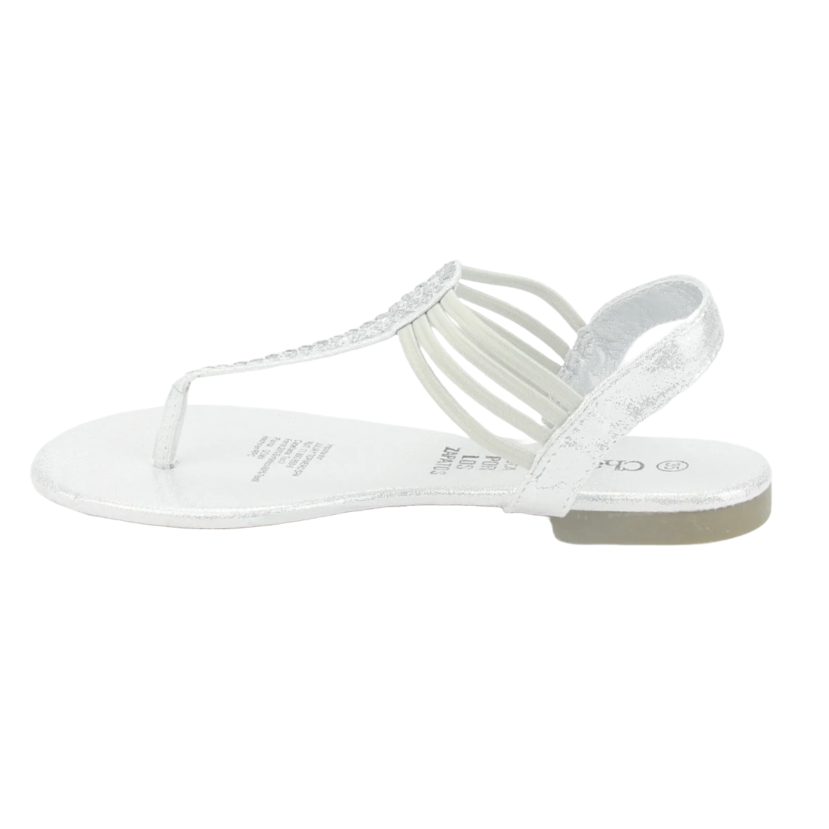 Las Sandalias Chalada Silver 17-ALKI-5 destacan por su diseño moderno y elegante, ideal para ocasiones formales o salidas casuales. Están elaboradas con acabados metálicos en tono plateado, que aportan un toque sofisticado. Su estructura incluye una base resistente y cómoda, con detalles decorativos que realzan su estilo.