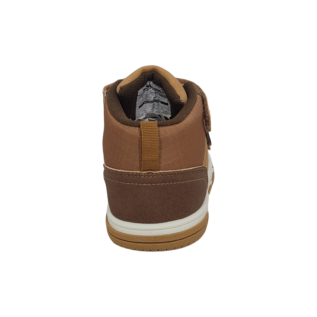 Material y diseño: Botín infantil en color café con terminaciones suaves y resistentes para acompañar los primeros pasos.