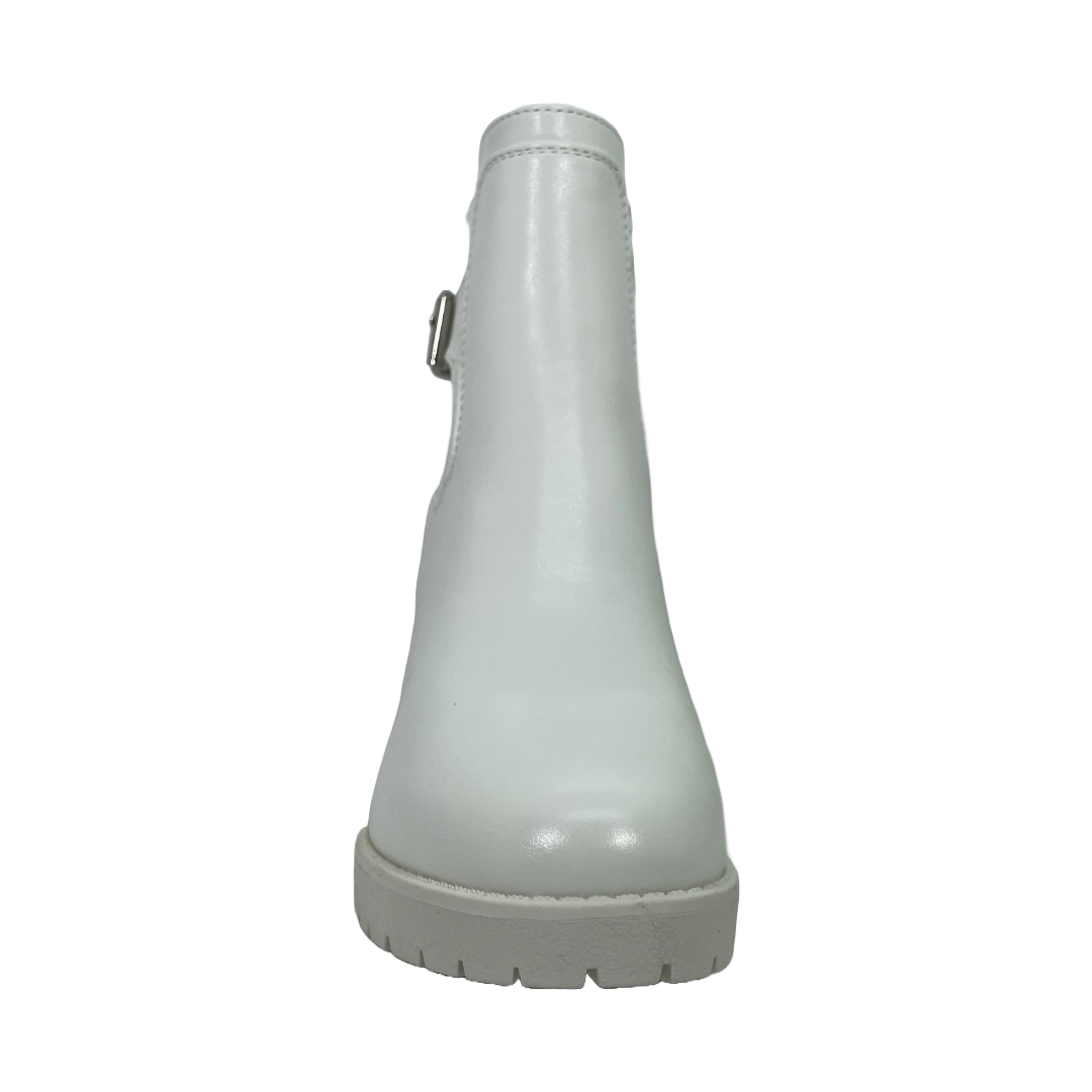 Estos botines combinan un acabado tipo cuero con detalles de costura que realzan su estilo moderno. Su interior suave ofrece confort prolongado y la suela con diseño dentado garantiza mayor estabilidad. Ideales para complementar looks casuales en días fríos o entretiempo.