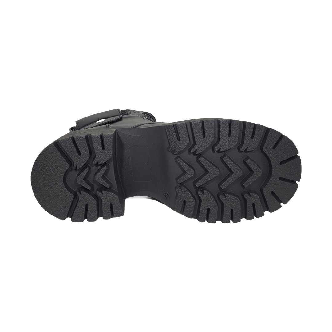 Suela y amortiguación: Suela de goma con textura antideslizante y tacón medio que aporta estabilidad y altura sutil.