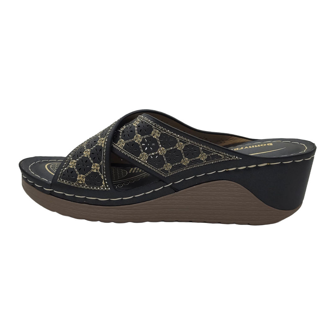 La Sandalia de Fiesta Bonny Franco Black 301-0918 es la definición de elegancia y versatilidad. Con un diseño sofisticado en color negro y detalles estilizados, estas sandalias son ideales para completar tus atuendos de noche, destacando en eventos formales, cenas o fiestas especiales. Su enfoque en comodidad y estilo asegura que luzcas impecable mientras disfrutas cada momento.