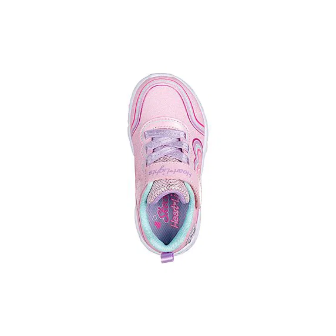 Brilla y deslumbra con la magia de Skechers Heart Lights® Infinite Heart Lights - Retro Hearts. Este diseño iluminado presenta una parte superior de malla con brillo y estampado de corazón arcoíris en 3D, cordones elásticos satinados, Skechers Adaptive Closure para un ajuste personalizado y una entresuela esculpida con iluminación y detalle de 'cadena de corazones'.
