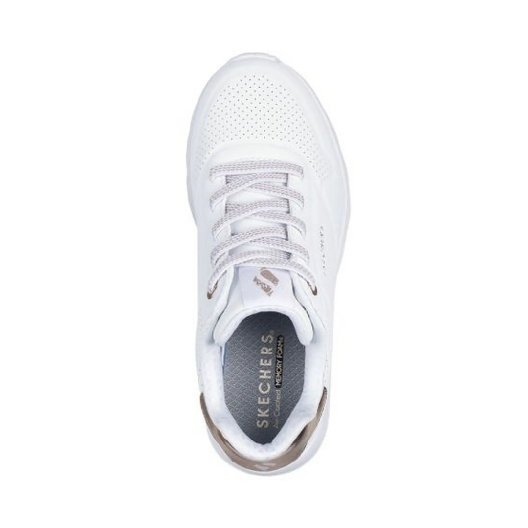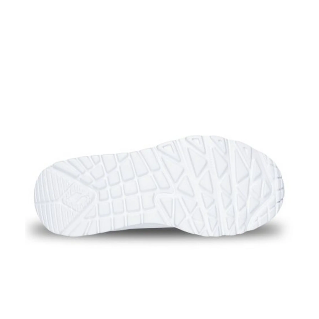 Material y diseño: Capellada sintética blanca tipo cuero, con perforaciones para mejor ventilación y estilo urbano limpio.