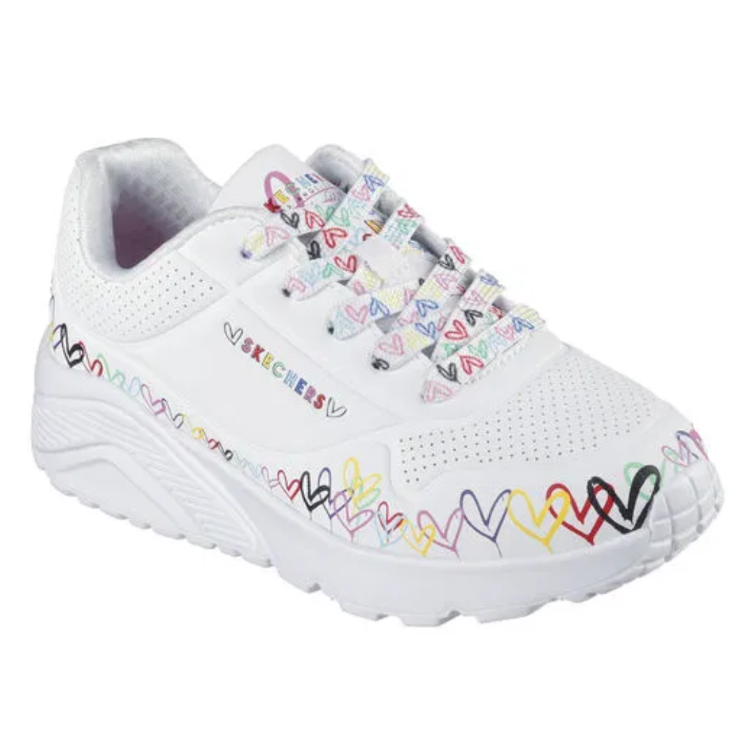 Colaboración especial: Diseño inspirado en los icónicos corazones del muralista James Goldcrown, parte de la colección Skechers x JGoldcrown