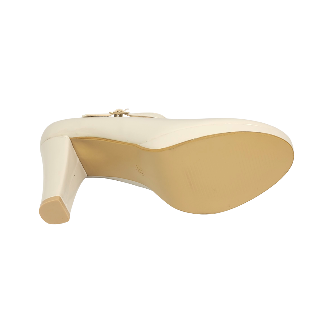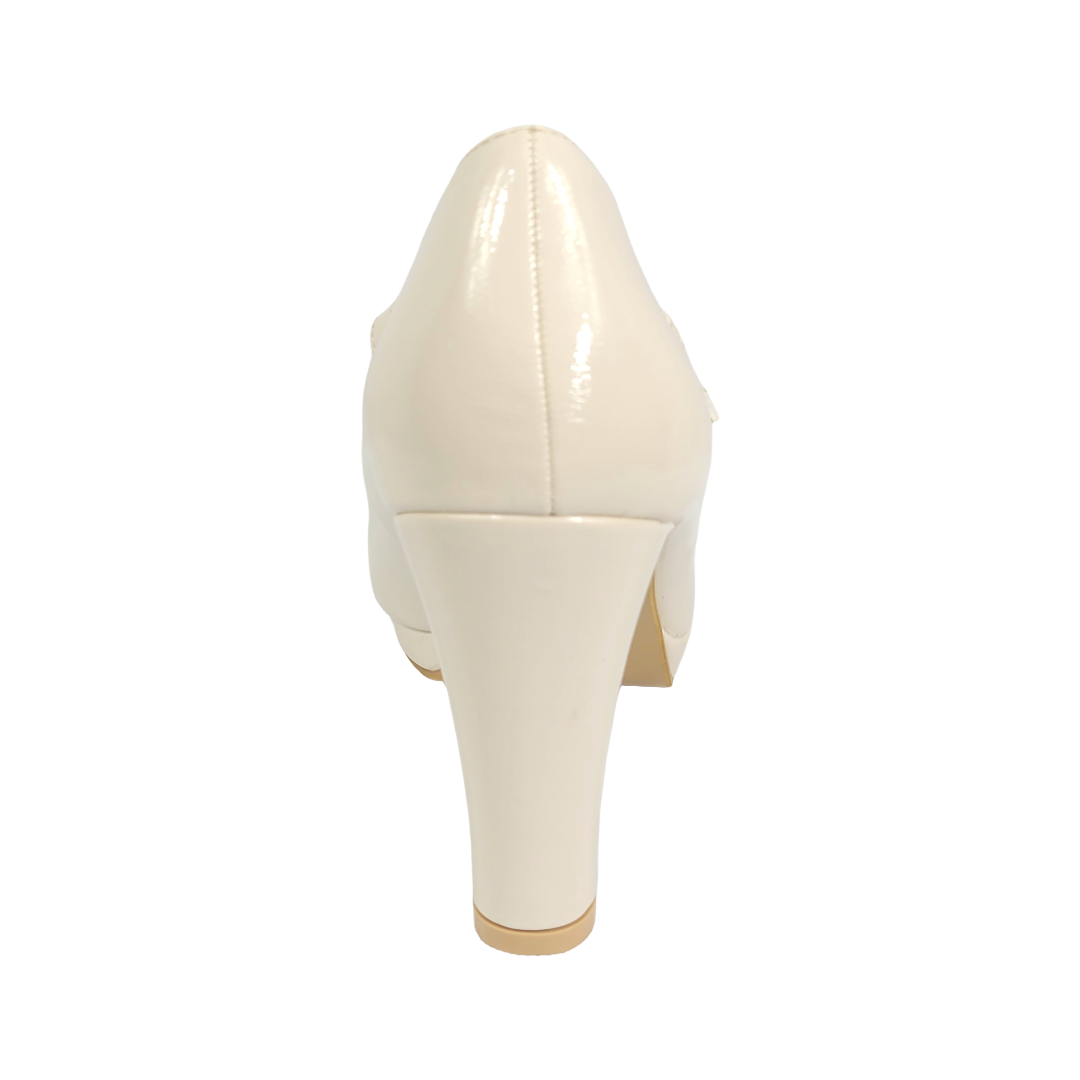 Material y diseño: Calzado formal en charol beige, con acabado brillante que aporta elegancia y sofisticación.