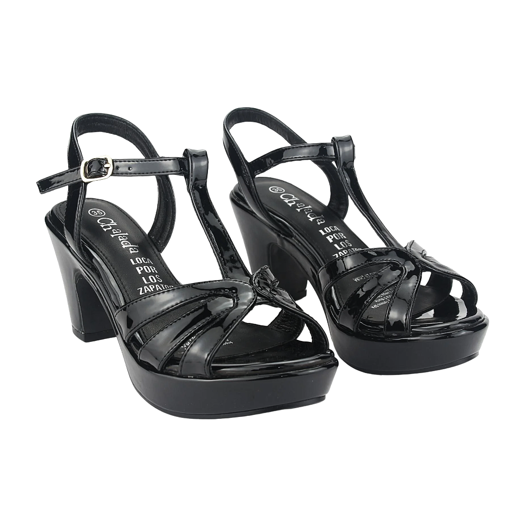 Asegura tu presencia con las Sandalias de Fiesta Chalada Negro Charol. ¡Pídelas ahora y destaca en tu próximo evento!