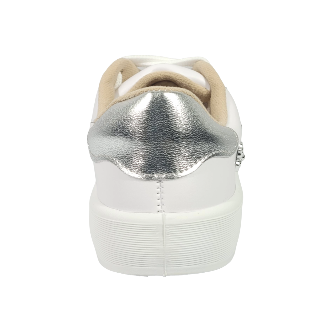 Material y diseño: Confeccionadas en material sintético blanco, con diseño moderno y detalles elegantes para un look urbano.