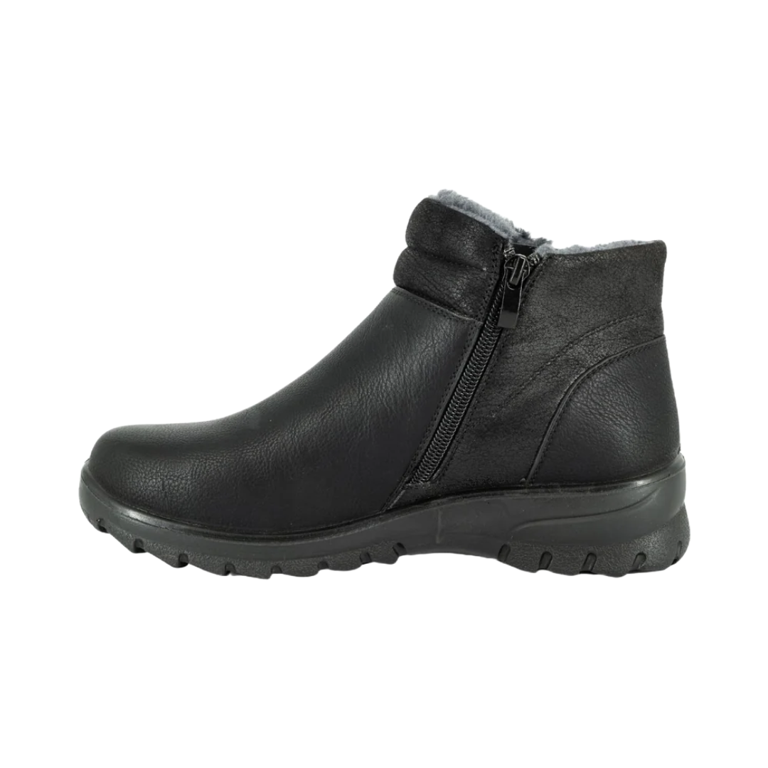 Elaborados en cuero sintético de alta calidad, los Botines Inés Negro presentan un diseño elegante de caña media con acabado mate y detalles de costuras finas, logrando un look sofisticado y moderno.