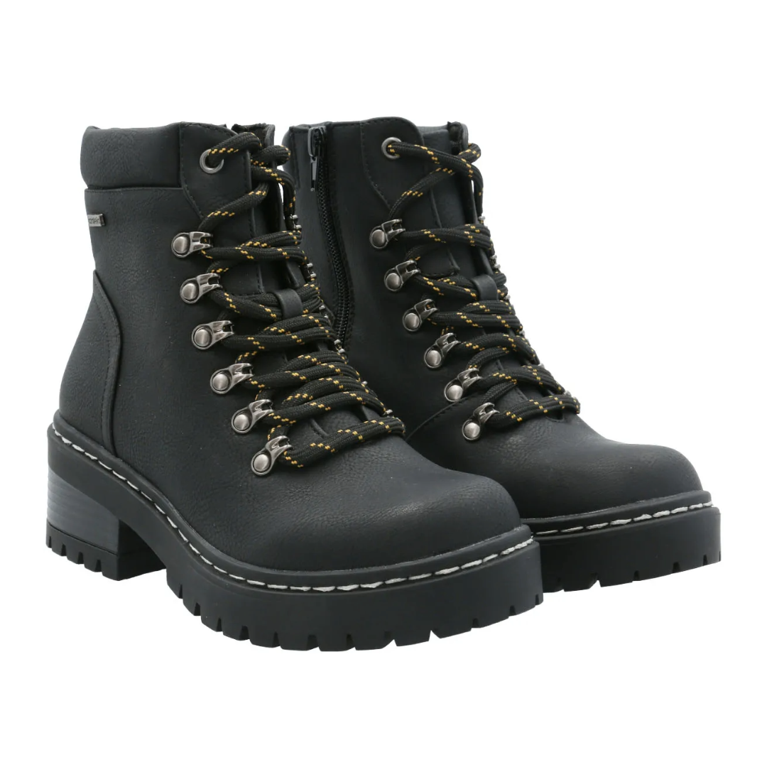 Otros detalles relevantes: Cierre interior y cordones con broches alpinos que permiten un ajuste personalizado. Tacón cuadrado de 6 cm y plataforma de 3 cm para mayor confort.