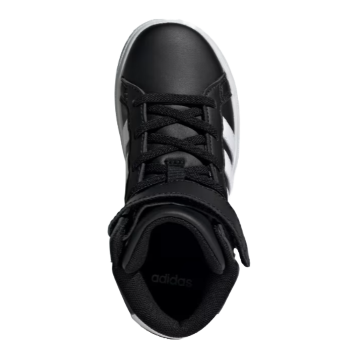 Las zapatillas Adidas Grand Court Mid en color negro, modelo IE3863, ofrecen una fusión de estilo clásico y comodidad moderna. Con un diseño de corte medio, proporcionan soporte adicional en el tobillo, mientras que su parte superior de material sintético asegura resistencia y durabilidad. La plantilla acolchada y la suela de goma ofrecen una pisada cómoda y estable. Las 3 tiras perforadas de Adidas en contraste añaden un toque distintivo, haciendo de estas zapatillas una opción versátil que complementa cualquier atuendo, ya sea deportivo o casual.