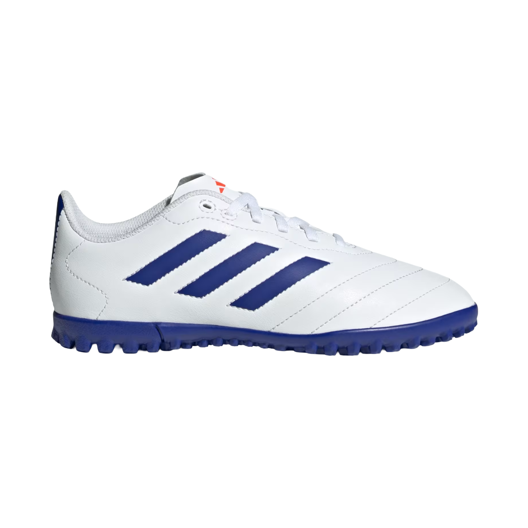 ¿Qué hace a las Goletto VIII la zapatilla de babyfútbol ideal para niños? Este modelo de training (TF, Turf) está específicamente diseñado para optimizar el juego en pasto sintético o canchas de moqueta, gracias a su suela de caucho con multitacos de tracción superior, que garantiza un agarre firme y permite cambios de dirección rápidos y seguros. El exterior del calzado es de material sintético suave y duradero, que incorpora pespuntes en el antepié. Este detalle técnico no solo brinda un look clásico, sino que proporciona un mejor control del balón y un toque preciso.